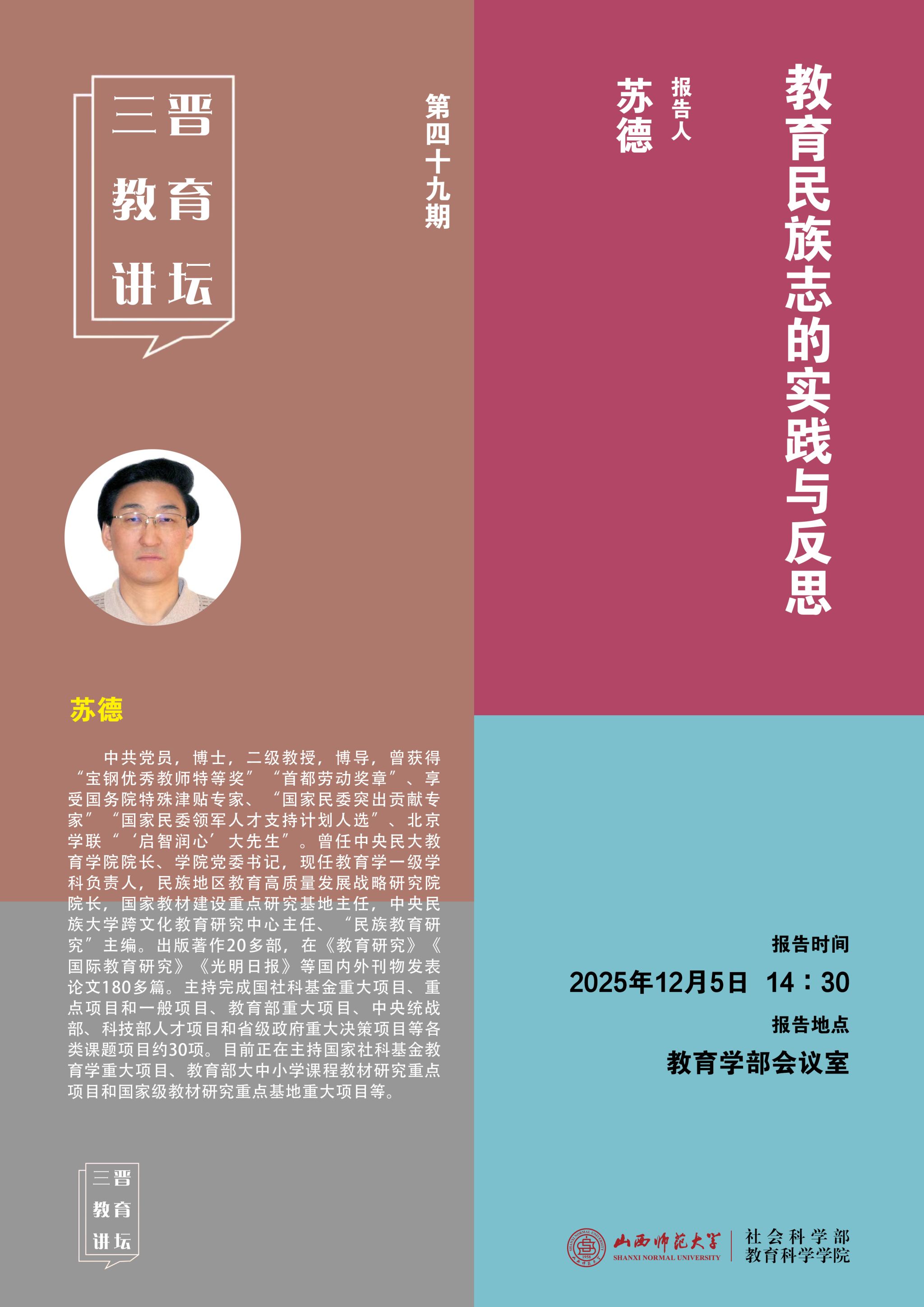 【预告】中央民族大学教授苏德应邀来我院作学术报告