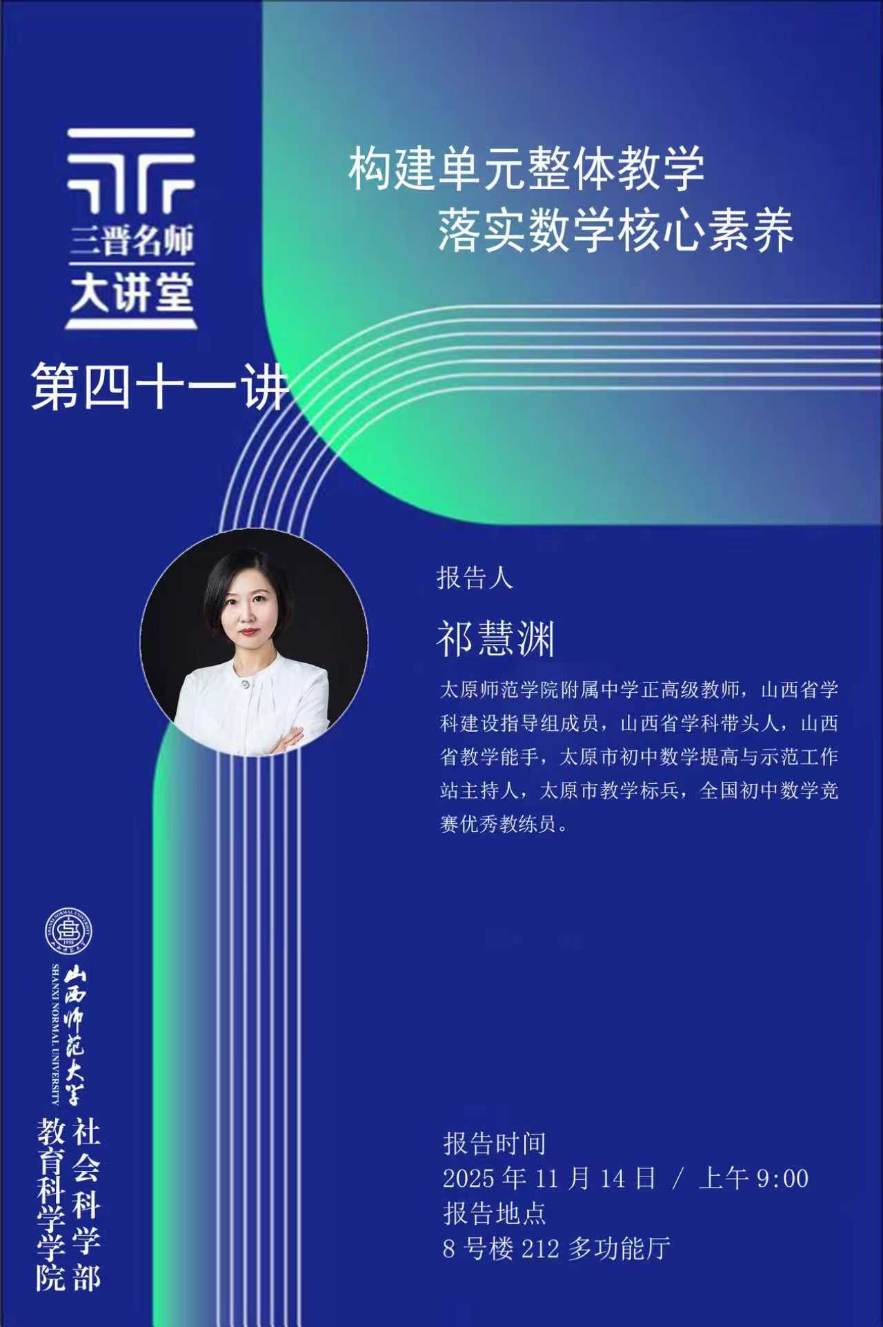 【预告】太原师范学院附属中学正高级教师祁慧渊应邀来我院作学术报告