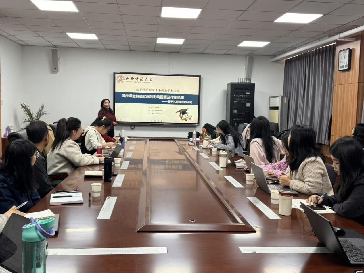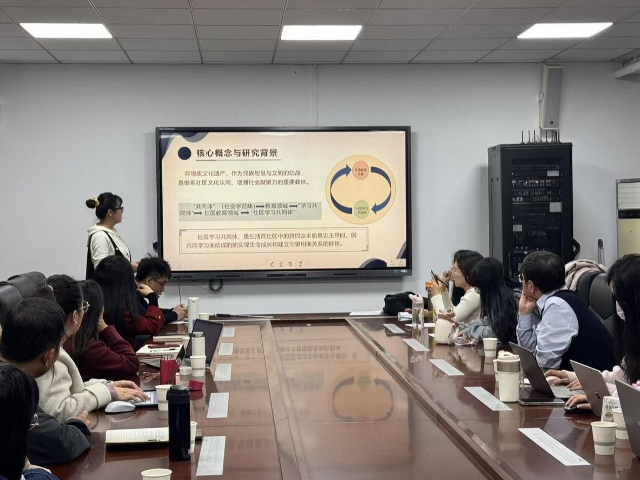此次学术沙龙分为报告分享、互动探讨、总结点评三个环节。在报告分享环节,罗菊芳博士、王晓丹博士和杨丽勤博士分别作了题为《硕士研究生分类招生考试变革趋向与应对策略》《非遗传承促进社区学习共同体构建的触媒机制研究》《同步课堂价值实现的影响因素及作用机理—基于扎根理论的研究》的专题分享。在互动探讨环节,在场博士从选题方向、研究范式和逻辑路径等方面,对三位博士的研究提出了针对性的改进意见。
