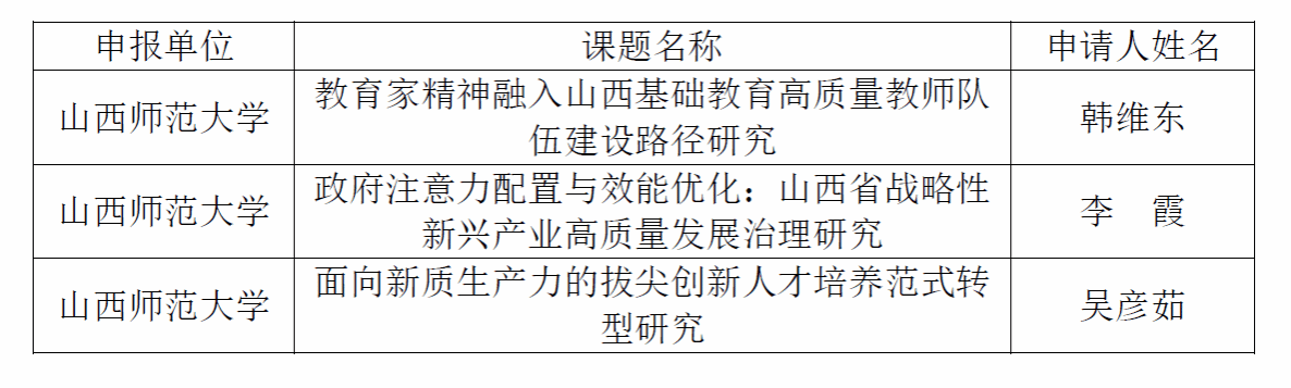 近日,山西省委宣传部公示了2025年度山西省哲学社会科学规划课题拟立项名单,我院再传捷报,共获批5项课题。其中,重大类别课题2项,一般类别课题3项,为历史最好成绩。