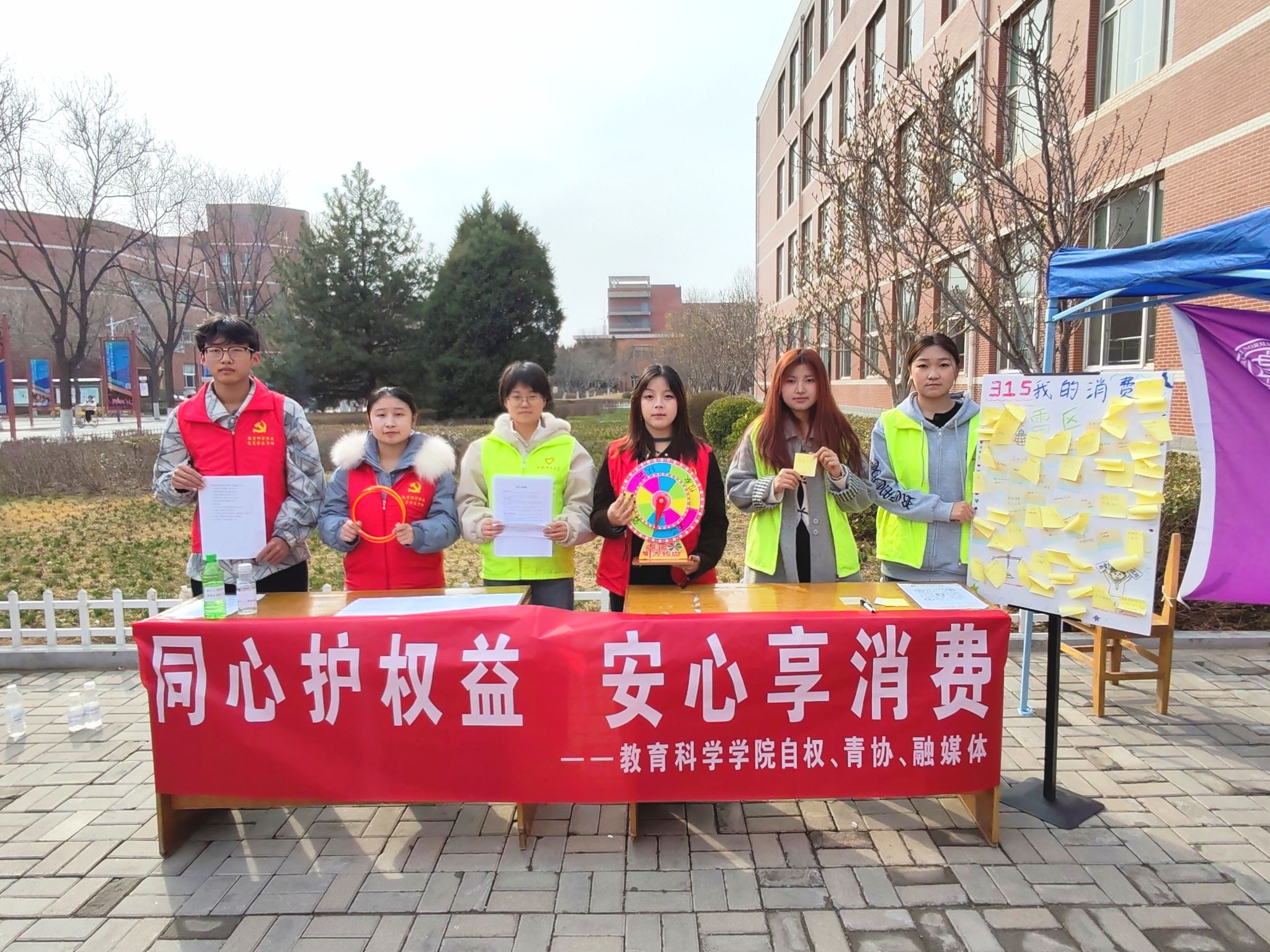 3月15日,由我院自律与权益委员会主办,青年志愿者协会与融媒体部共同承办的“同心护权益,安心享消费”315主题活动在南区四号五号教学楼中间举行。