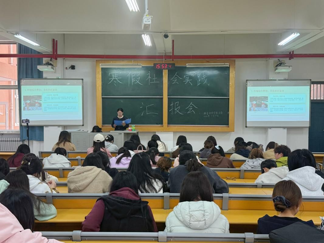 汇报会上,各实践团队及个人依次登台,围绕寒假期间开展的志愿服务、社会调研等实践活动进行成果展示与经验分享。同学们依托详实数据、鲜活案例与真挚感悟,通过PPT演示、故事讲述等形式,生动呈现了实践中的所见所闻、所思所获。汇报内容既体现了对社会发展现状的细致观察,也展现了对实践服务经历的深刻思考,充分彰显了青年学子扎根社会、践行初心、在实践中成长奋进的青春风采。