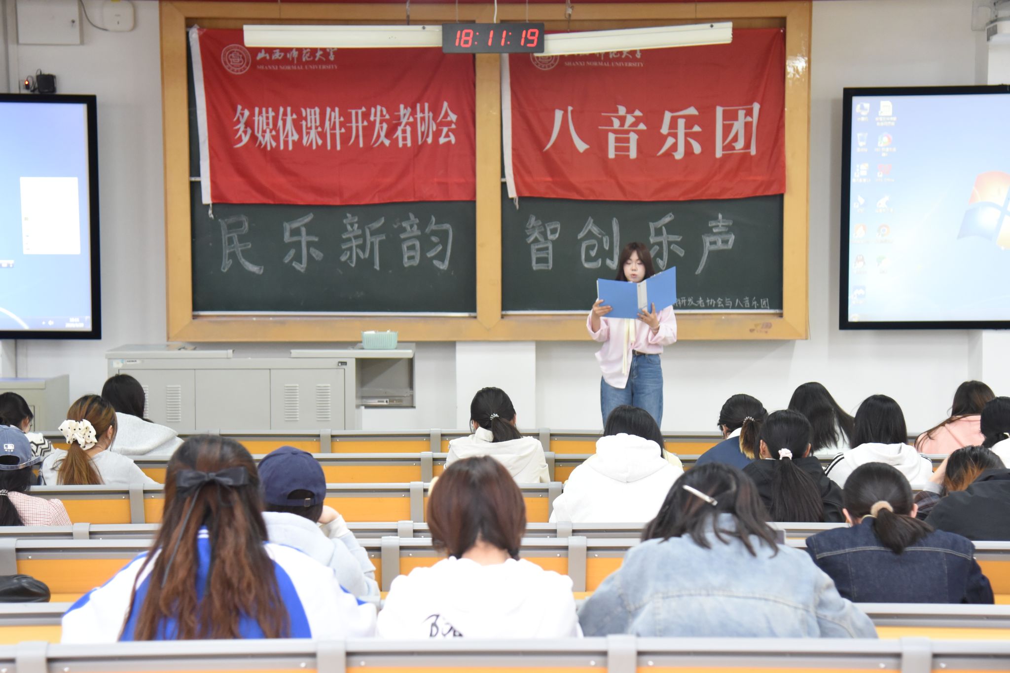 3月29日,我院多媒体课件开发者协会与八音乐团在南区3107教室联合举办了“民乐新韵,智创乐声”主题分享活动。